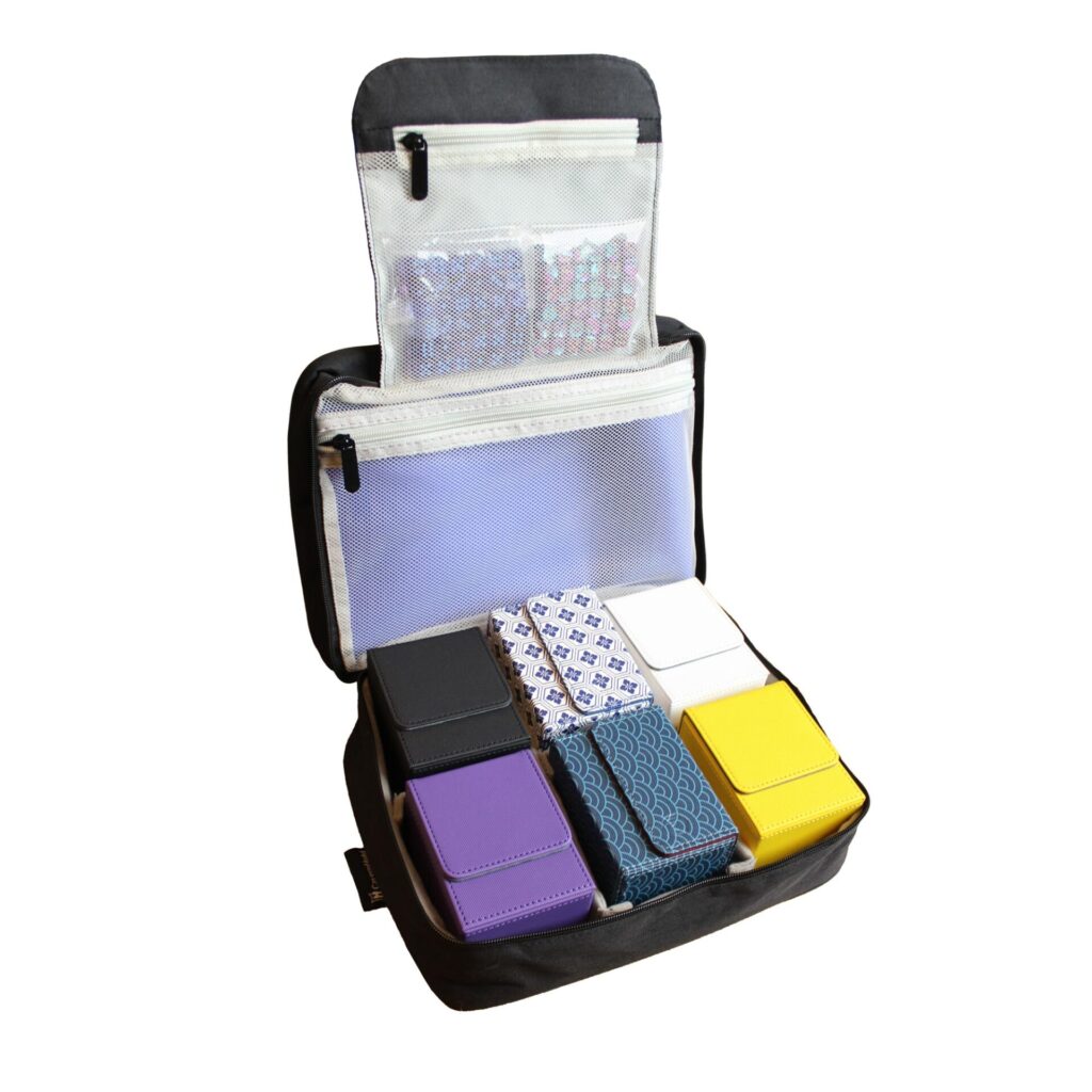 Our largest modular game bag for board games, TCGs, RPGs, and more. Consolidate your cards, games, books, and more into one place for maximum convenience and protection, whether you are on the go or storing them on your shelf.
